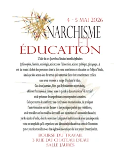 Journées Anarchisme et éducation - 4 et 5 mai à la bourse du travail de Paris 20 mars 2026 Lire la suite »
